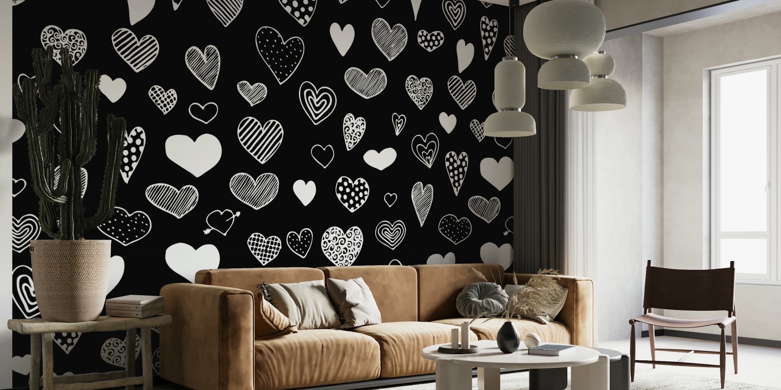 Heart Doodles Black and White Wallpaper Happywall